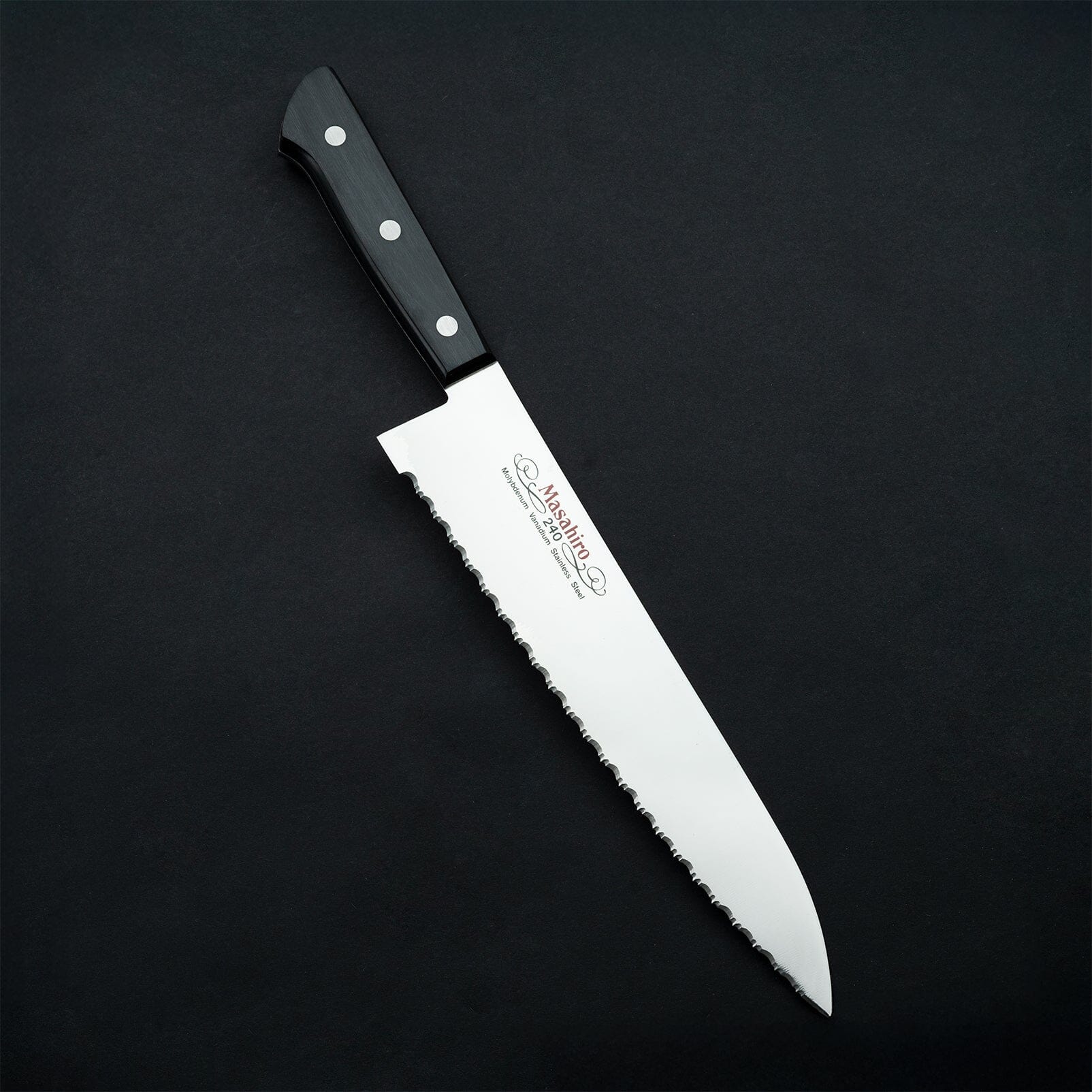 Brødkniv, utformet som en kokkekniv. Kan også brukes på samme måte som universalkniv, men egner seg ikke til kjøtt.
