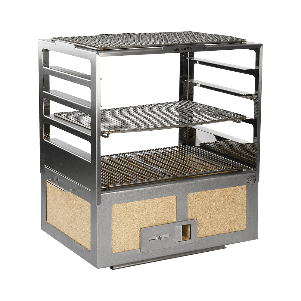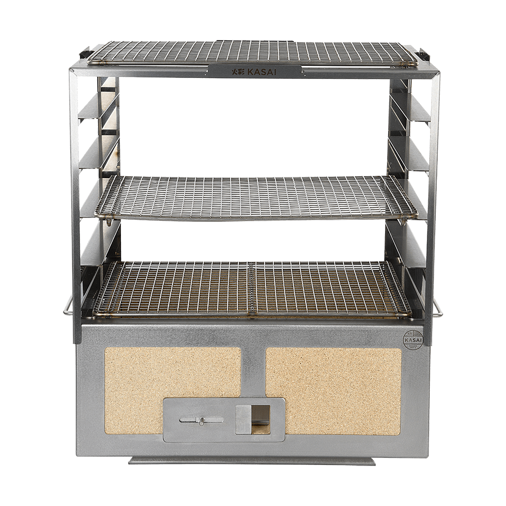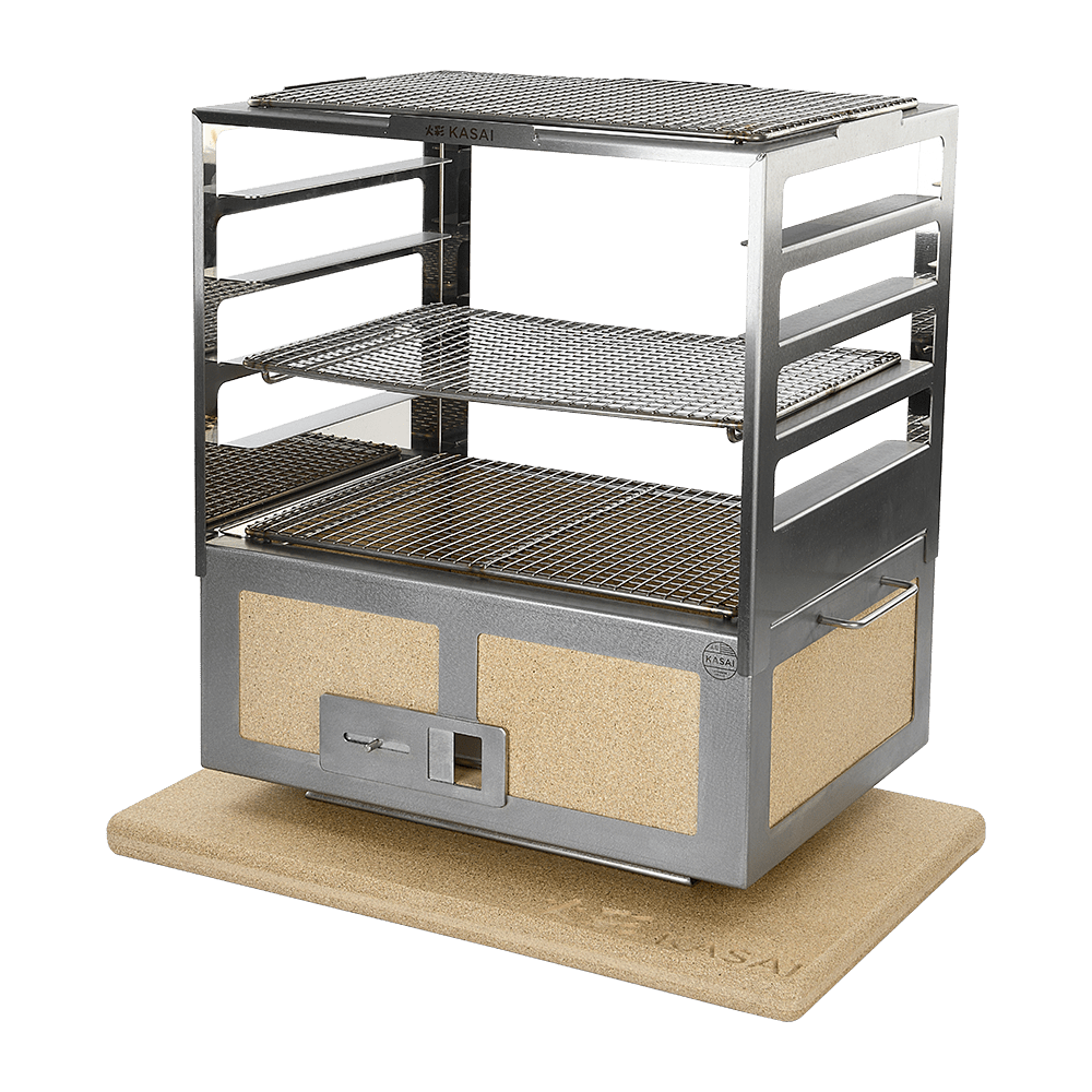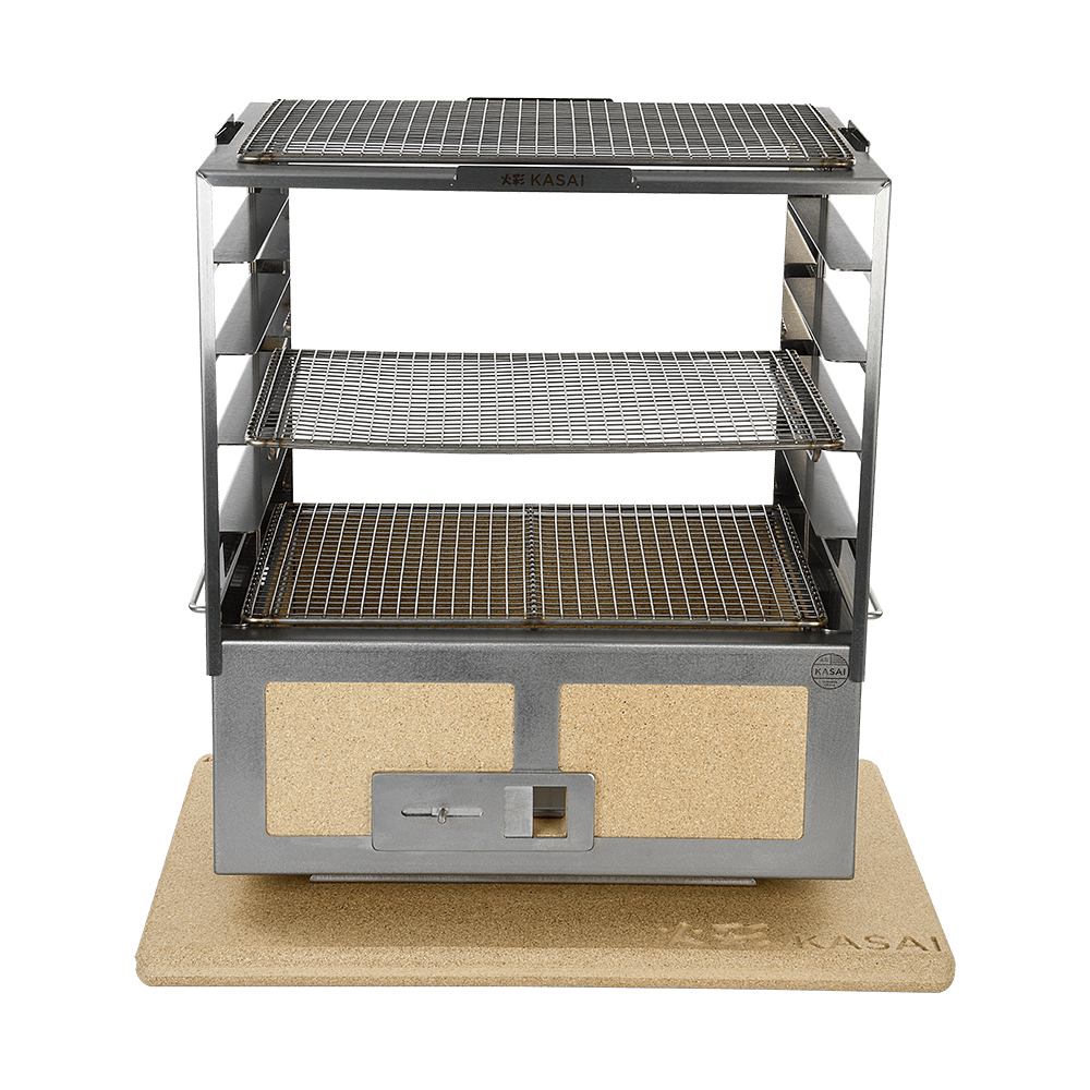 I stedet for bare å kontrollere temperaturen på Kasai-grillen, kan du nå justere avstanden mellom maten og varmen, slik at du kan hvile og tilberede en rekke forskjellige ingredienser samtidig.