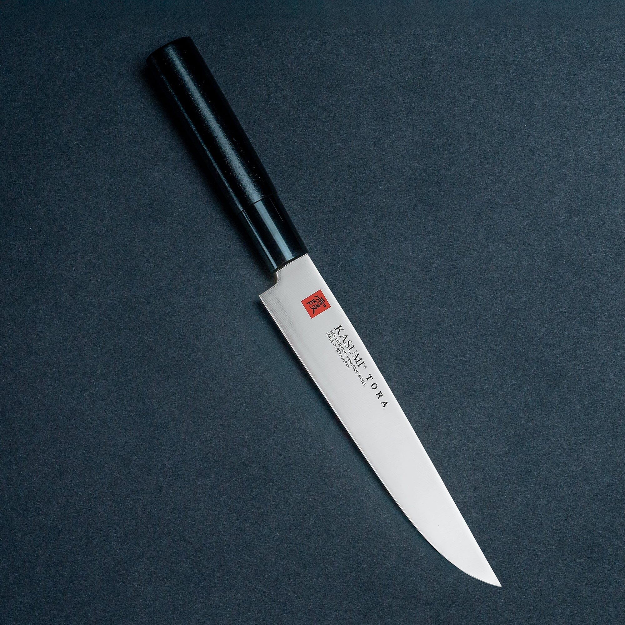 Tora er en ny håndlaget serie fra Kasumi. Stålet er av molybdenum vanadium, et høykarbon rustfritt stål, dette forenkler vedlikeholdet og gir gode kutte egenskaper. Håndtak av epoksy belagt magnolia.