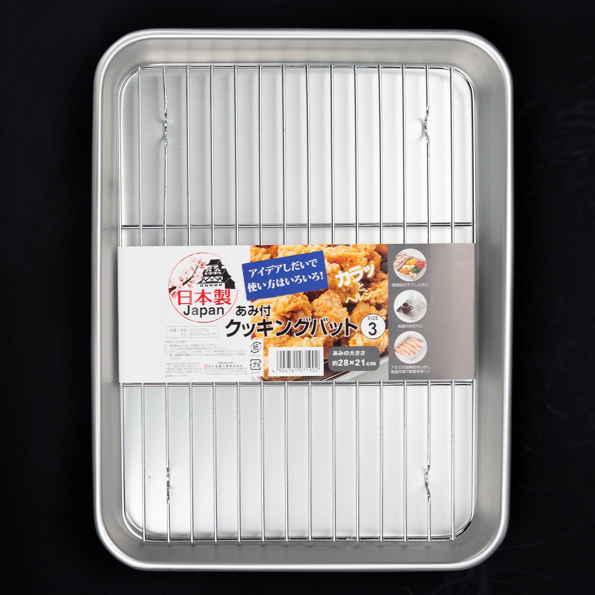 Et lett og praktisk japansk hvilebrett i aluminium med uttakbar rist. Brukes i profesjonelle kjøkken for å holde tempura sprø, la kjøtt og fisk renne av, eller organisere råvarer under forberedelser. Risten løfter maten slik at væske renner bort, og aluminium gjør brettet både robust og enkelt å håndtere.