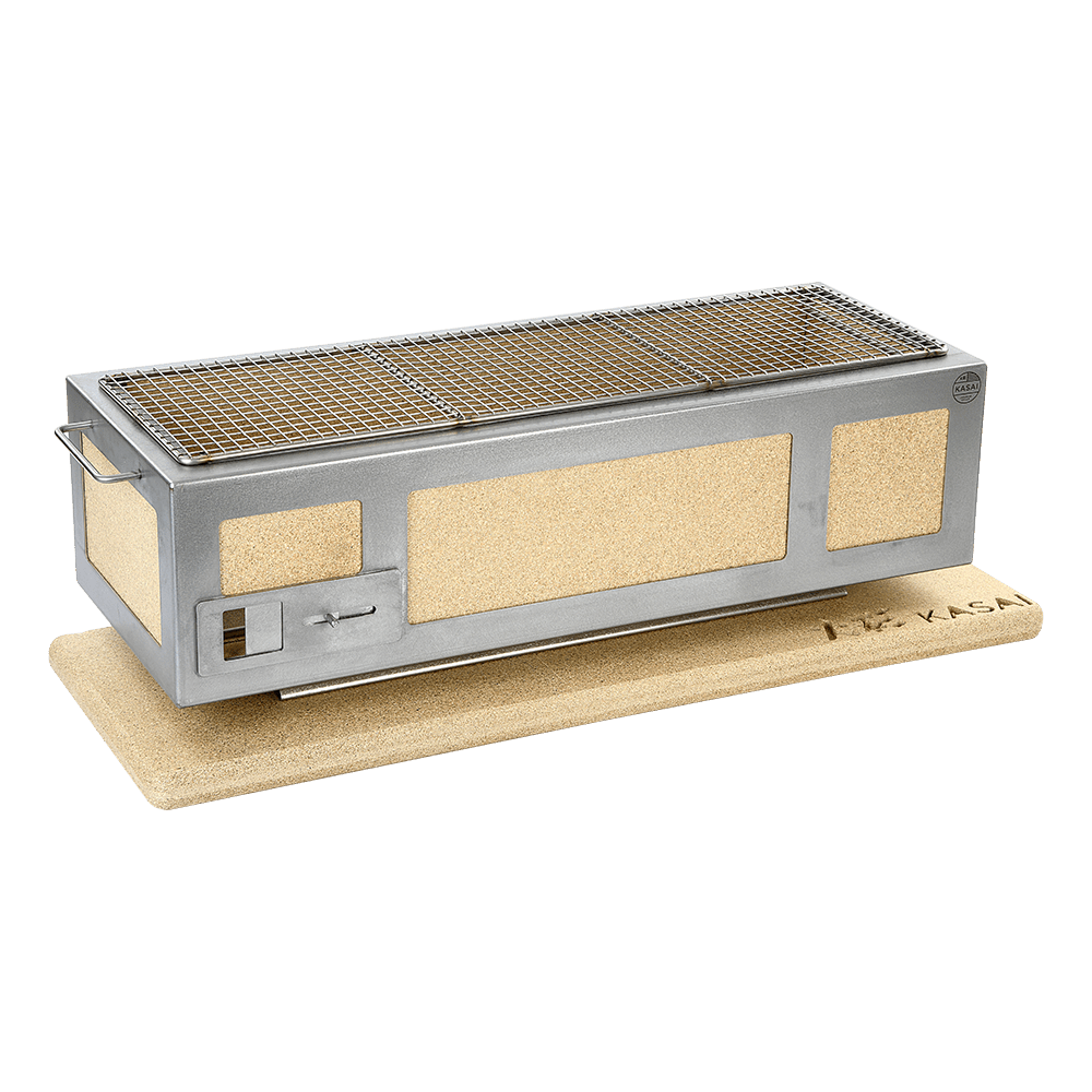 Kasai-flisene er laget av et naturlig mineral som gjennomgår eksfoliering. De reflekterer varmen effektivt, gir jevn temperatur og tåler opptil 1200 °C. Når flisene er brukt opp, kan de erstattes.