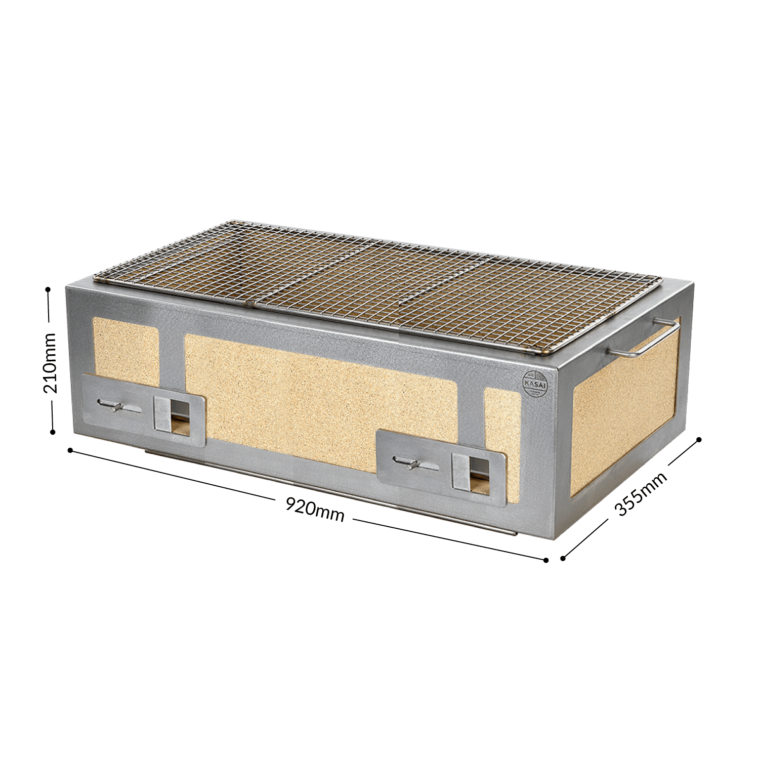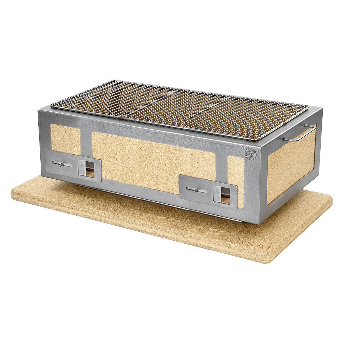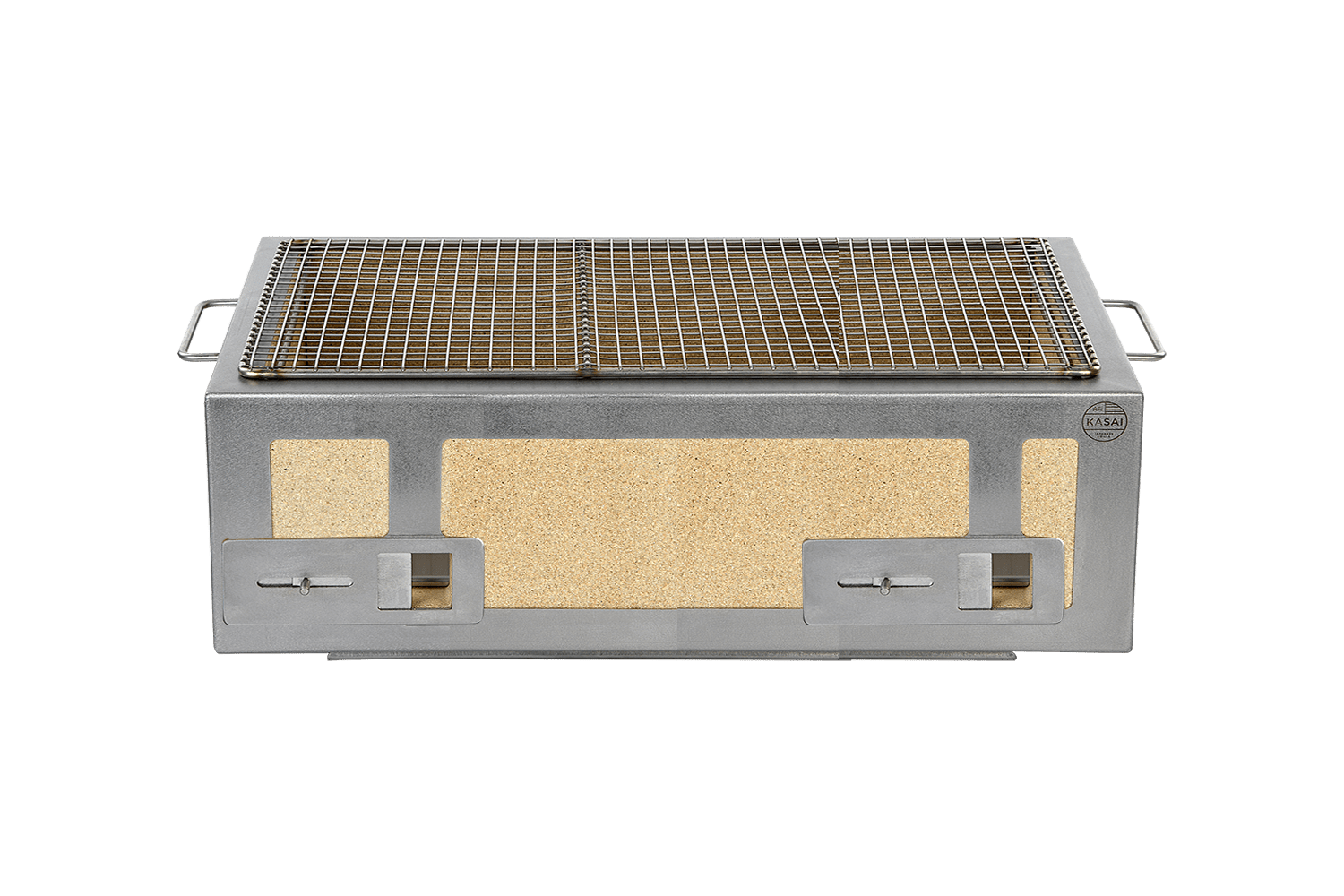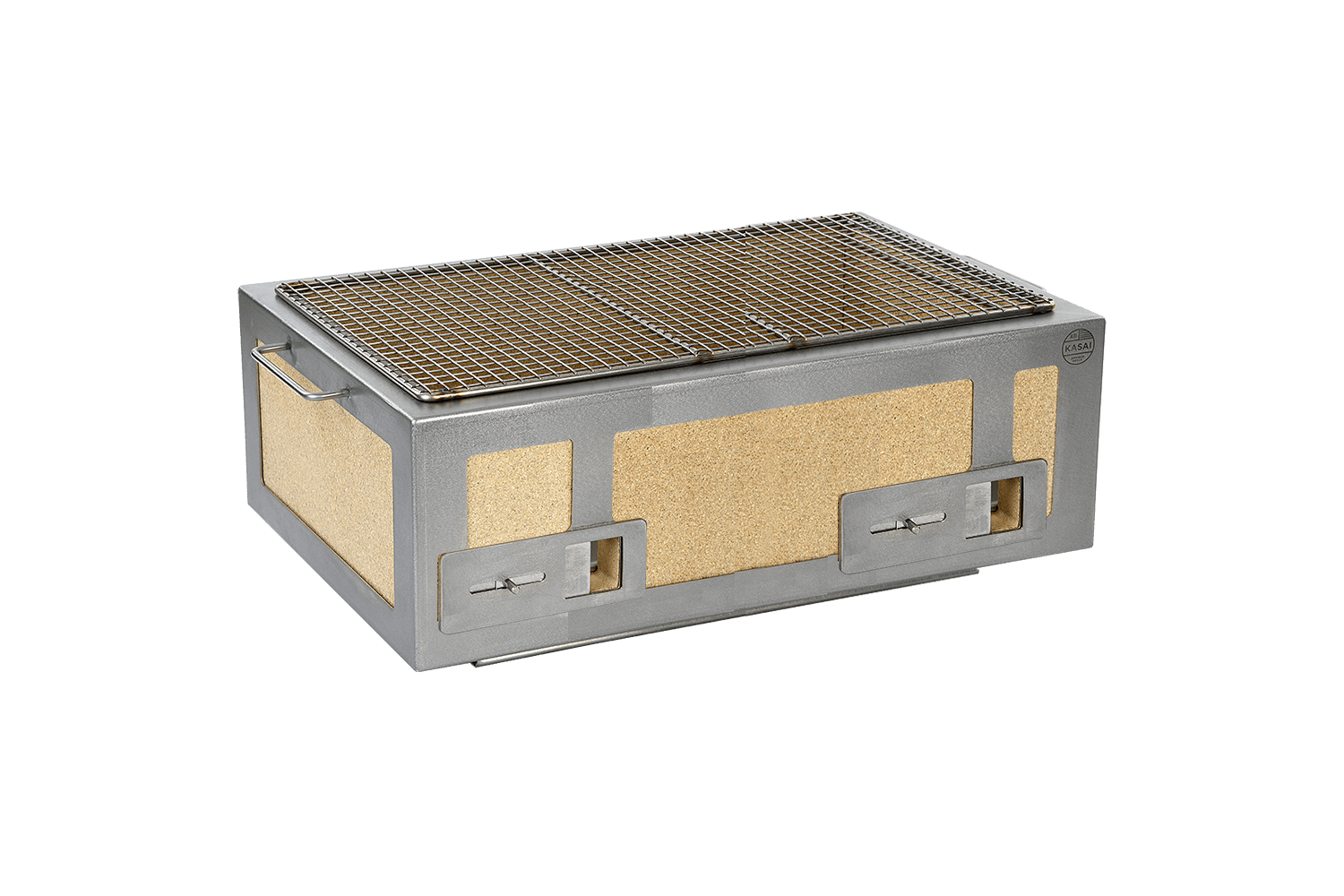 Den ekstralange Kasai Konro-grillen kombinerer japansk grilltradisjon med moderne, britiskprodusert kvalitet. Med børstet stålfinish, flytende føtter, bærekraftige mineralfliser og praktiske håndtak, er dette en grill som leverer både estetikk og funksjon.