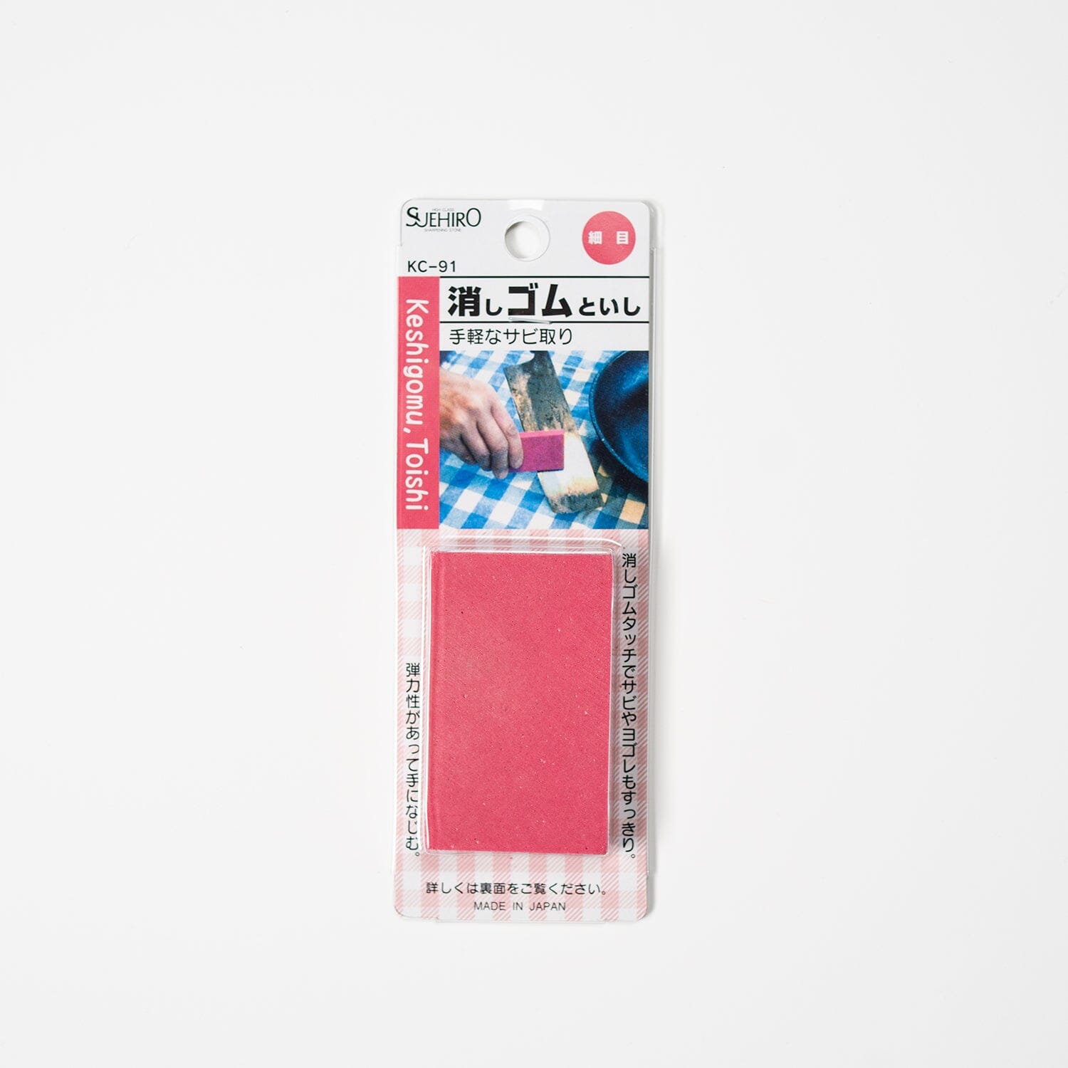 Rustfjerner for karbonkniver, passer også perfekt til å holde den keramiske staven ren med. Klossen kan også brukes til rensing av gryter og panner. Finnes med medium og grov korning. Vi anbefaler fin til karbonkniv og keramiske staver.